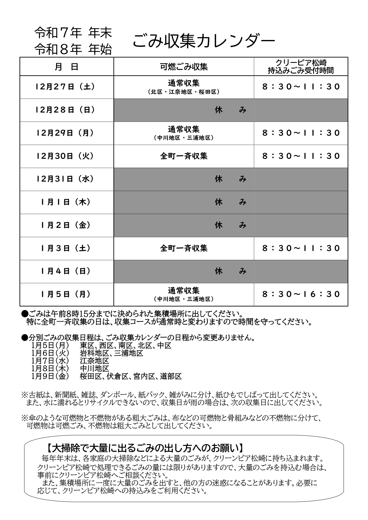公開日 2025年10月27日 お問い合わせ 松崎町役場 生活環境課住所:〒410-3696 静岡県賀茂郡松崎町宮内301-1 本庁1FTEL:0558-42-3969FAX:0558-42-3184E-Mail:kankyou@town.matsuzaki.lg.jp