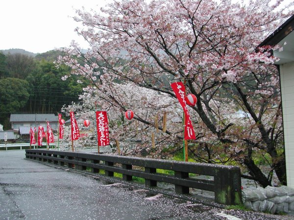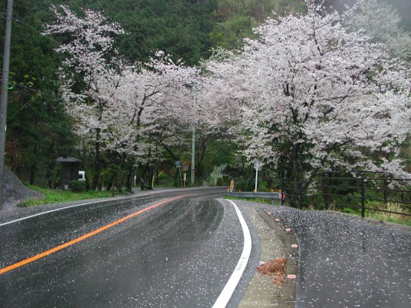 - 室岩洞・大沢温泉・那賀バイパスとも”落花さかん”。 今日はどこも桜吹雪です。