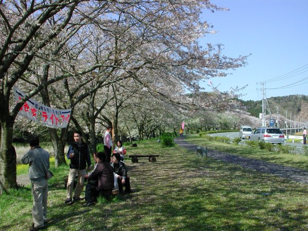 - 那賀バイパス”散り始め” ウォーキングや、写真を撮っている方が多いです。 道路向のワイルドフラワーも見頃です。