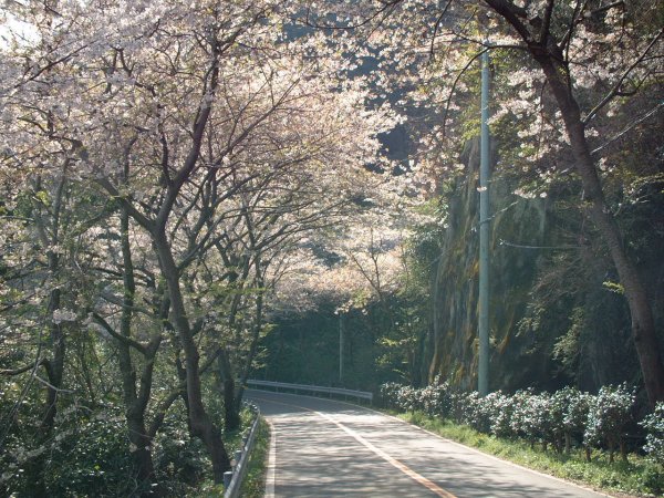 - 室岩洞”落花さかん” 桜吹雪のトンネルが見られます。