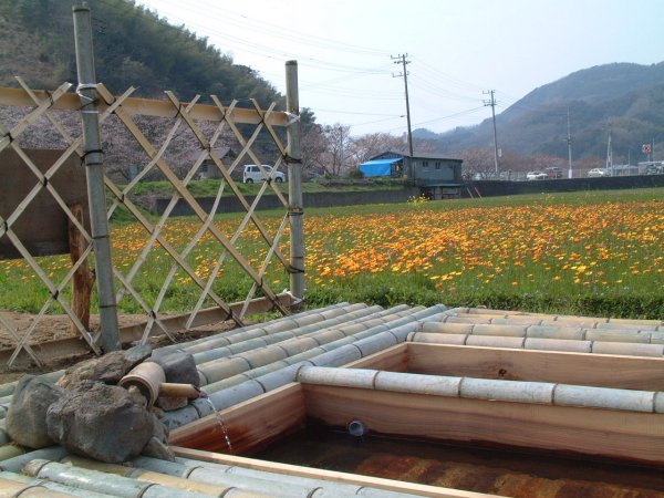 - 大沢温泉”落花さかん” 菜の花や紫花菜もきれいです。