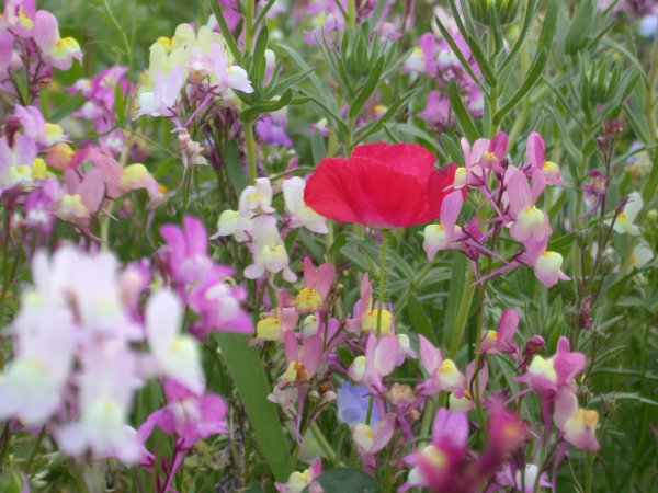 - 那賀花畑にポピーが咲き始めました。 赤い花が際だっています。
