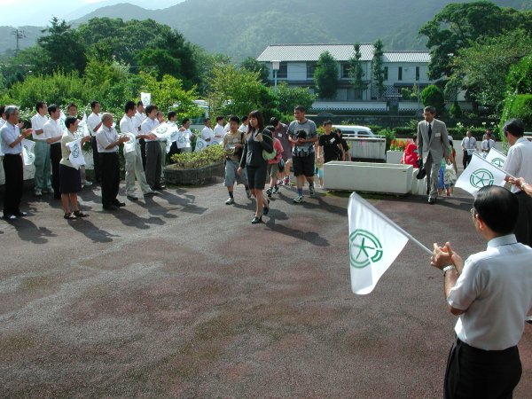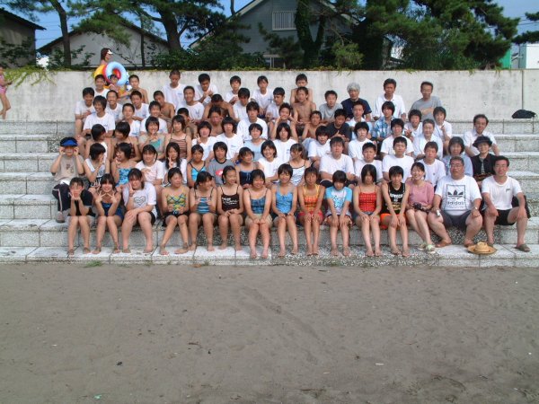 - 姉妹都市である安曇村からの訪問団は、松崎海岸にて、松崎中学校の生徒と交流しました。