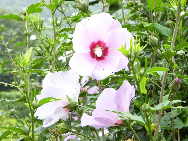 - ムクゲが松崎海岸周辺を中心に町内各地に多く咲いています。