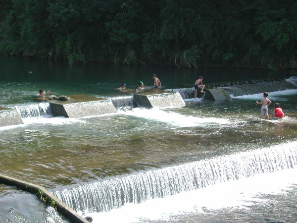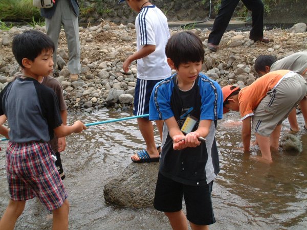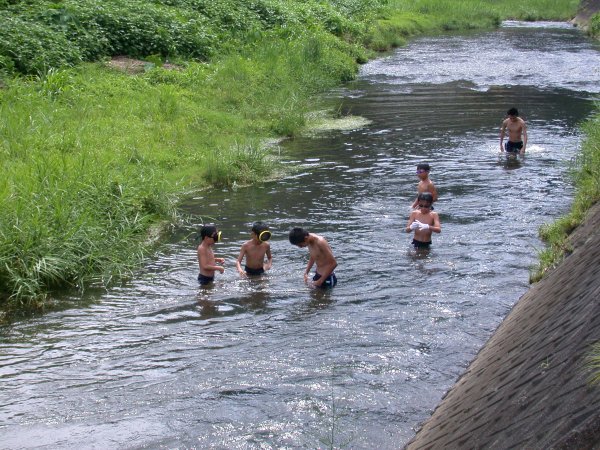 - 岩科川では、地元の子供達が水遊びをしていました。