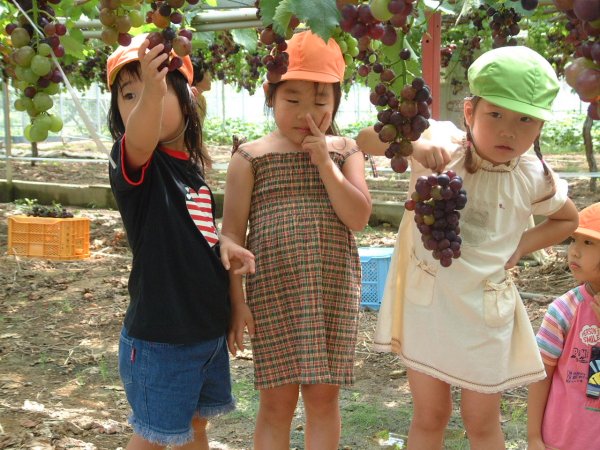 - 今日は、聖和保育園の子供達がブドウ狩りを楽しみました。 マスコミさんも駆けつけ、子供達をモデルに取材していました。