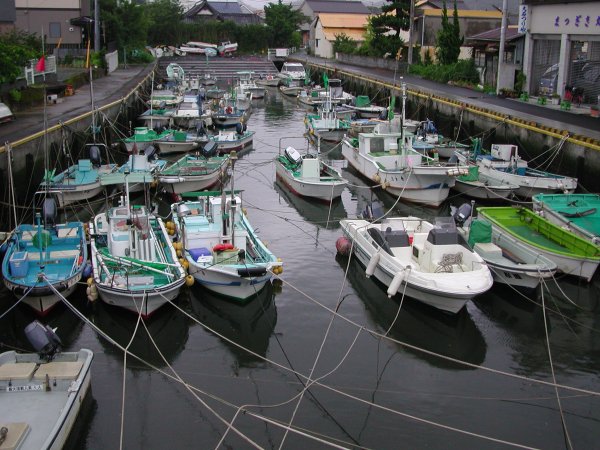 - 松崎の舟だまりには、台風を避け避難している船が集まっています。