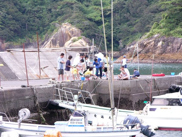- 雲見港ではアジ釣りを楽しんでいました。釣りをしている人の話ですと日中よりも夕方〜夜のほうが釣れているようです。