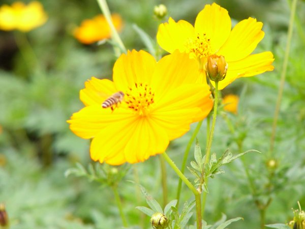 - 牛原山の梅園付近ではキバナコスモスが見頃を迎えています。
