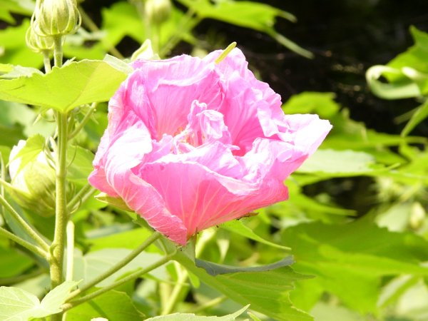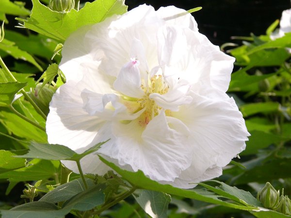 - 岩科の八木山地区では、道路沿いに酔芙蓉という珍しい花が咲いています。