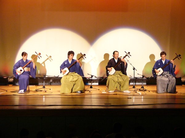 - 松崎21世紀フォーラムの協力で実現できたコンサートで、約500人の来場者が三味線の音色に感動していました。