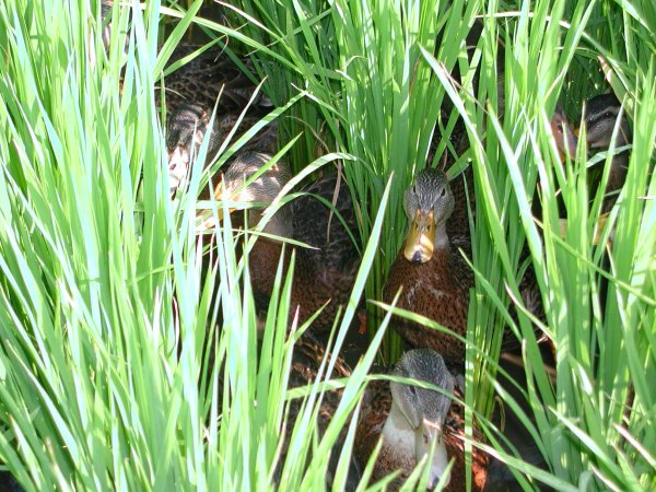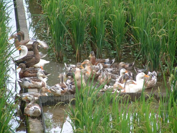 - 那賀にあるたんぼでは、カルガモが飼われています。カルガモはたんぼの草を食べ、泳ぎまわる事によって草を生えにくくしてくれるそうです。