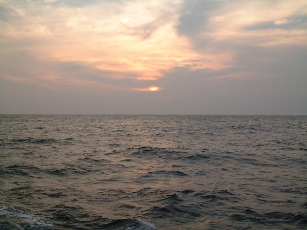 - 今日は、水平線の雲が厚く夕日は雲の中へ沈んでしまいましたが、雲の色が変わりきれいでした。