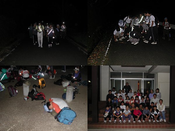 - 昨夜21:00に松崎小学校をスタートした子どもたちは、町内22kmを早朝までかけてハイキングしました。 子どもたちは、道のりを経るごとに増す眠気や足の痛みに耐え、最後まで歩き通しました。
