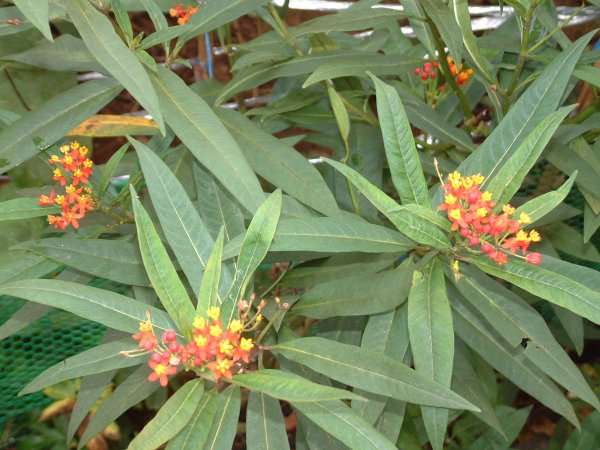 - アスクレピアスの花が赤色・黄色と綺麗に咲いています。
