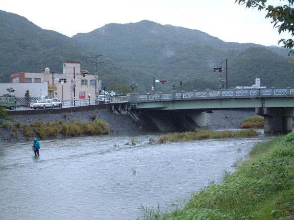 - 昨夜の雨で、川は水量も多く泥濁りです。 雨は時折ぱらつく程度です。