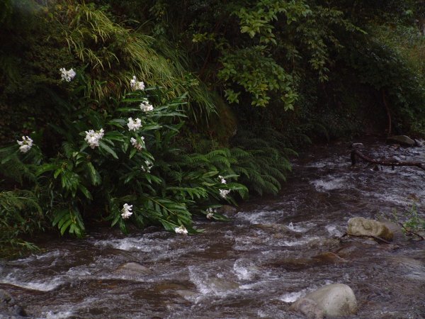 - 那賀川沿いには、白いユリが時おり水面につきながら、咲いています。