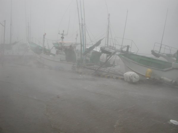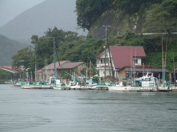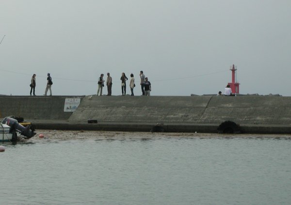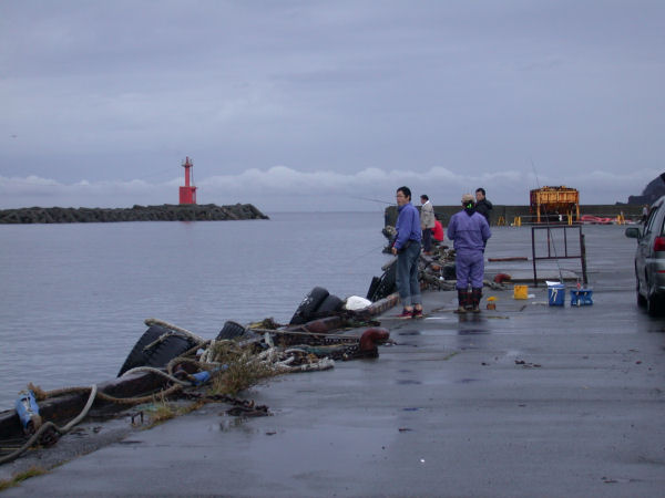 - 今日は雨です。 雨をものともせず釣りをしている人たちがいました。 漁協の前では、船釣りに出かけた大勢の釣り客が、下船していました。