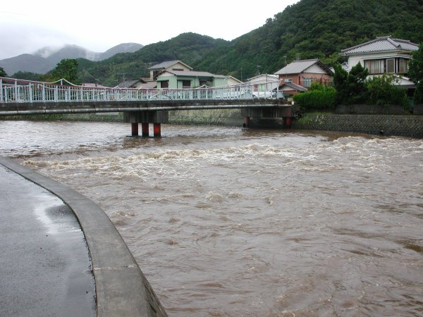 - 今日は朝から雨が降り続いています。那賀川の大沢、依田佐二平翁像付近の様子です。川が濁ってきた時期をねらって下流では鮎を釣っていました。