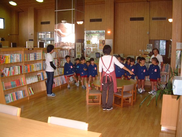 - 松崎町図書館へ中川幼稚園児が訪れ、図書館にある本や本の借り方などを勉強しました。