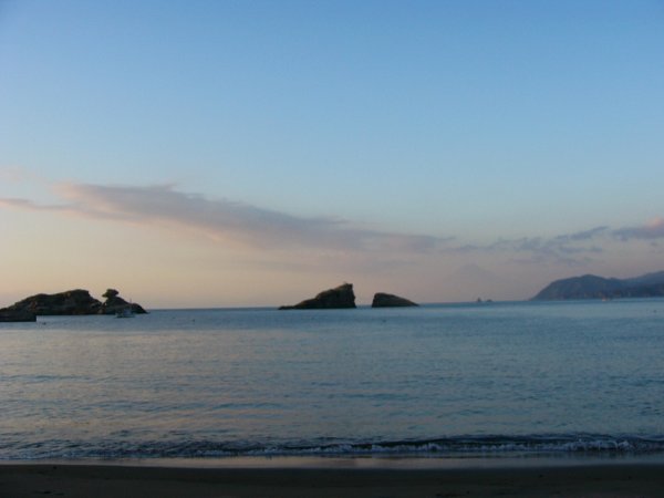 - 雲見海岸では、日曜日(17日)に海賊料理まつりが行われます。今日の雲見海岸は、富士山も見え夕景がとてもきれいでした。