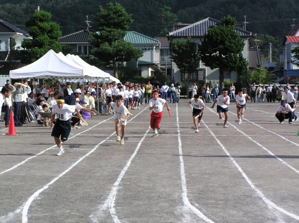 - 松崎小学校グランドで西豆地区小学校体育大会が行なわれ、小学生5,6年生277名が50m走や走り幅跳びなどの記録に挑戦しました。