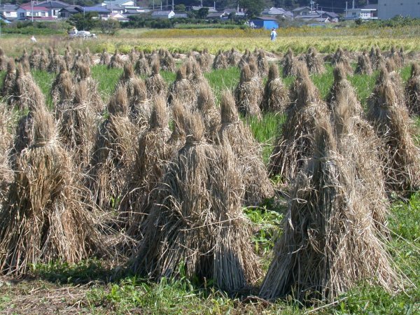 - 町内の田は、不安定な空模様に稲刈りや脱穀(稲こき)が延び延びになっています。 今週末は、久しぶりに快晴の週末なので、多くの田では稲刈りや稲こきが行われました。 もうすぐ、「ボッチ」が見られることでしょう。