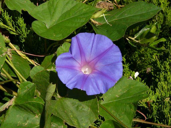 - 透き通るような青空のなか、弁天島付近には、朝鮮朝顔が咲いていました。