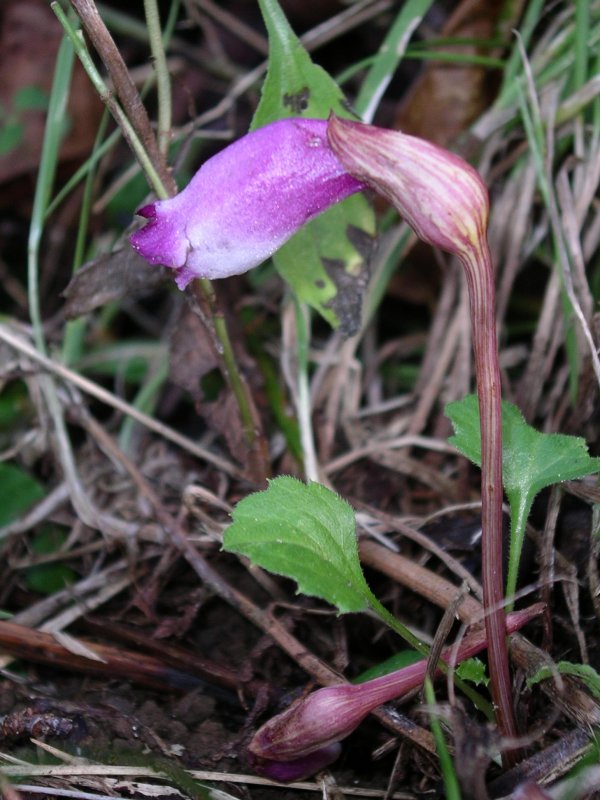 - 里山に南蛮渡来の煙管に似たナンバンギセルの淡い紫色の花が咲いています。 万葉集の中には、「思い草」の名ででてくる野草です。