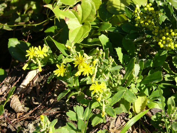 - 町の花「ツワブキ」が咲き始めました。 黄色い花と艶のある葉が特徴です。