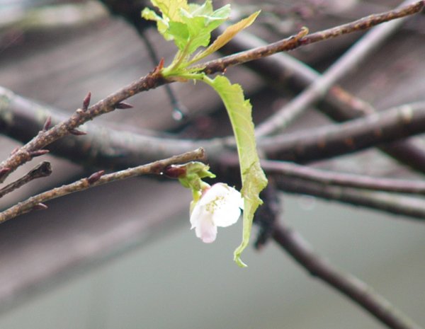 - 道の駅「花の三聖苑」かじかの湯の前にある桜の木では、季節を間違えたのか桜が数輪咲いていました。