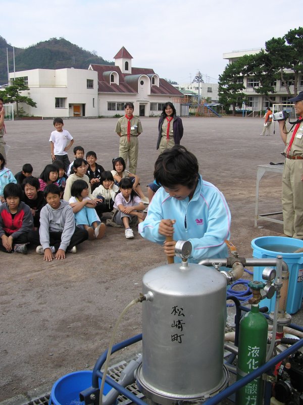 - ボーイスカウト伊東地区松崎第1団は、災害時を想定して昨夜から寝袋で寝たり、濾水機を使用し水の浄化などを体験しました。