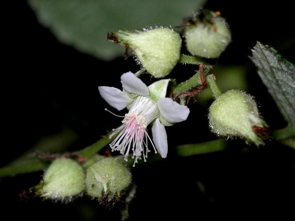 - 里山では、フユイチゴの茎がつる状に地面をはって可憐な花を咲かせています。 初冬には果実が赤く熟し食べられます。