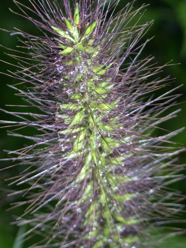 - 道ばたの空き地にチカラシバが見え始めました。 今日は雨なので、雨だれがつききれいでした。