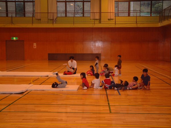 - 勤労者体育館で幼児運動教室が開催され、幼児はマット運動などを覚えようとがんばりました。