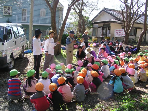 - 江奈ねぎや農園で松崎幼稚園と小規模授産所の交流会、みかん狩りをしました。園児はとれたてのみかんをおいしそうに食べていました。