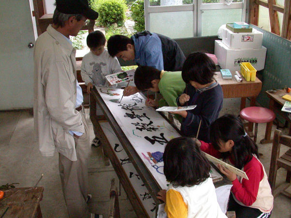 - 那賀川建久寺区では、秋祭りの準備のため子どもたちが地区内に飾る灯籠に絵を描きました。