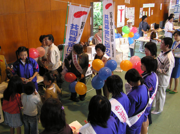 - 「ふれあいバザー福祉大会」が松崎小学校体育館で行なわれ、福祉体操や餅まき等で多くの人でにぎわいました。
