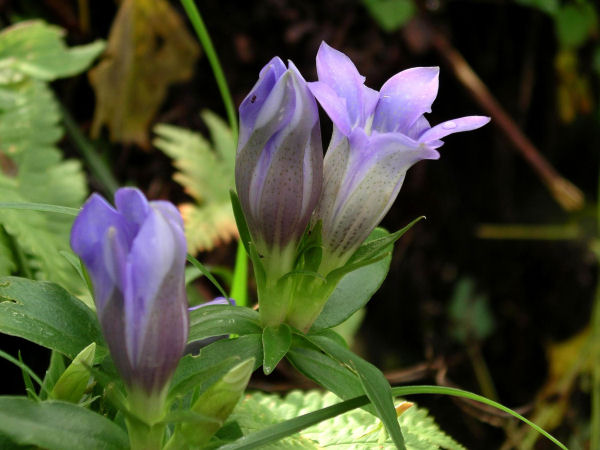 - 里山の山道に秋を代表する花の一つで、清らかな薄紫色のリンドウの花が咲いています。