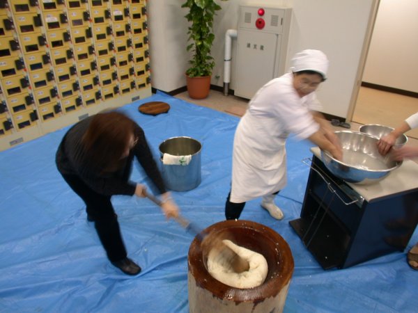 - 町営宿泊施設「国民宿舎伊豆まつざき荘」と「サンセットヒル松崎」では、宿泊のお客様と一緒に餅つきを行いました。 年輩の方々は、昔を思い出し、子供たちは珍しそうに餅つきの様子を眺めたり参加していました。餅つきのリズムに合わせ、どこからともなくかけ声が出たり、