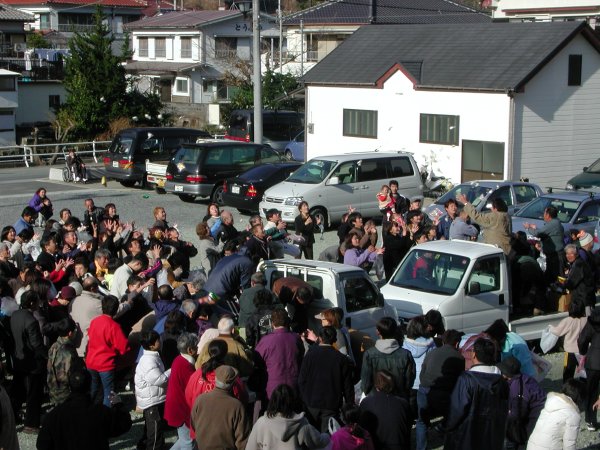 - 石部公民館前では餅撒きが行われました。