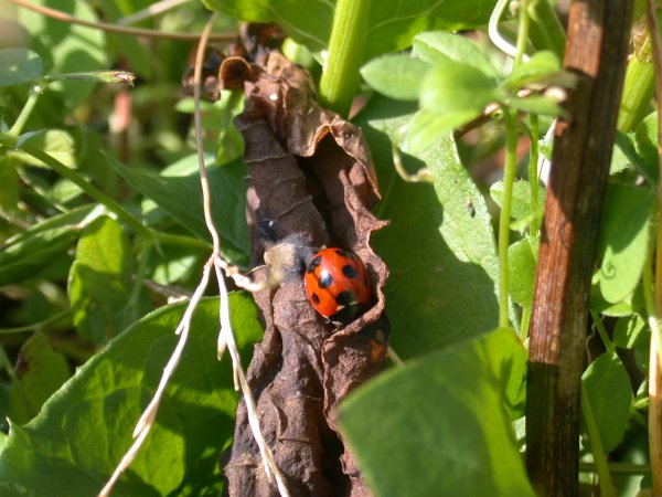 - 風が無くておだやかな日は、テントウムシもひなたぼっこしていました。