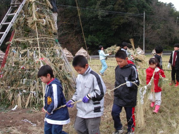 - 岩科峰区では、本日8:30から三世代交流事業による「歳の神」作りを行いました。 どんど焼きは11日(日)午前6:00から行われます。