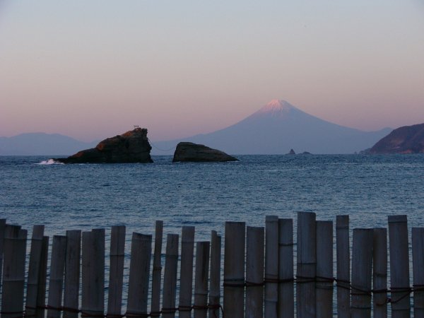 - 今の季節は、雲見海岸から夕日を見ることができませんが、赤く染まった富士山と空がとてもきれいでした。