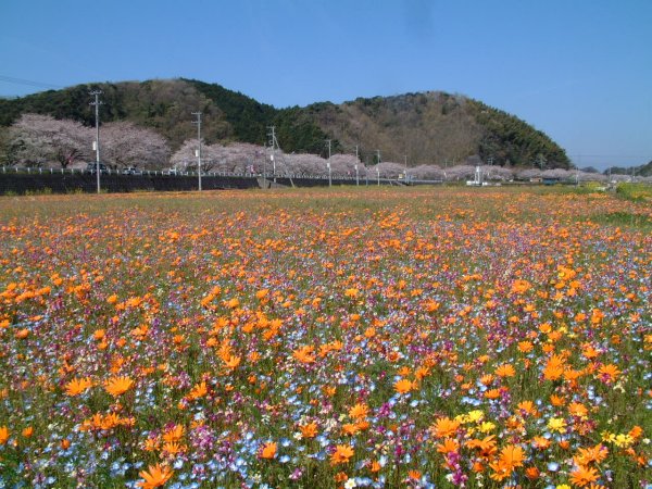 - 那賀川沿いの菜の花が咲き始めました。この菜の花は4月中旬まで楽しめます。 画像をクリックすると、桜の開花期の菜の花を見ることができます。