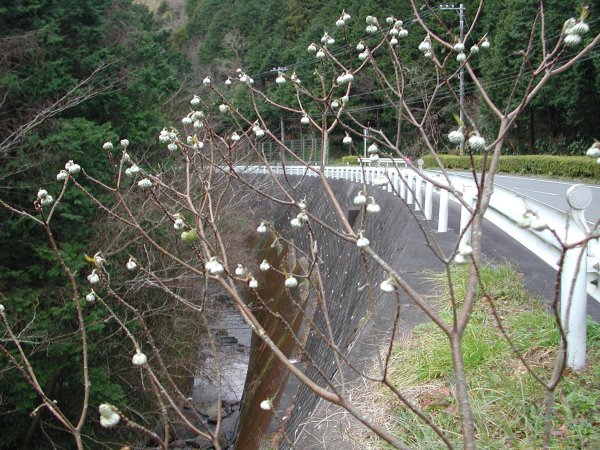 - 県道下田〜松崎線沿いでは、珍しいミツマタという花が咲いています。