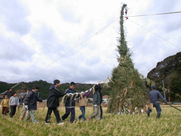 - 歳の神に子供たちが、飾りを巻き付けて仕上げます。