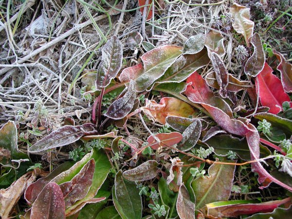 - 今朝は寒く霜が降りていました。 場所によっては薄氷がはっていました。