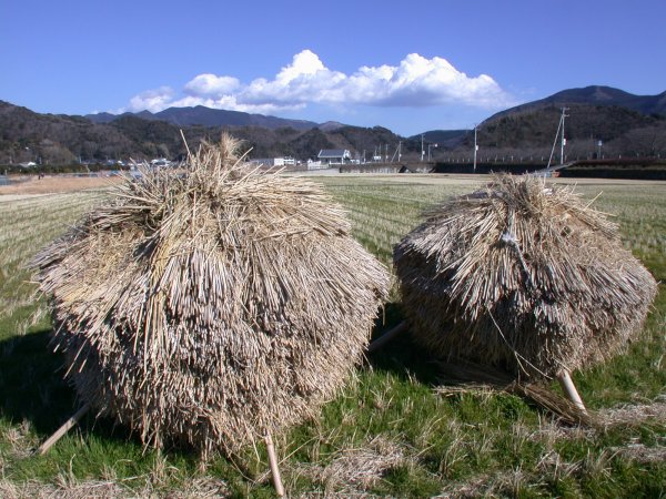 - 今日はとてもいい天気です。 空の雲はまるで夏の入道雲みたいです。 手前は、宙に浮くボッチ(稲ムラ)です。