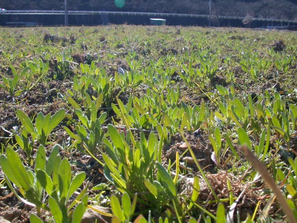 - 那賀の田んぼを使った花畑では、アフリカキンセンカの苗がだいぶ大きくなってきました。